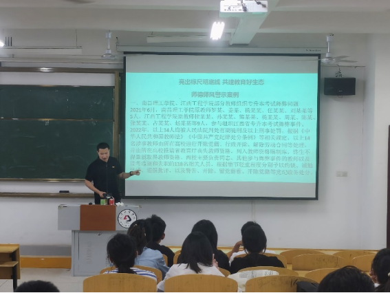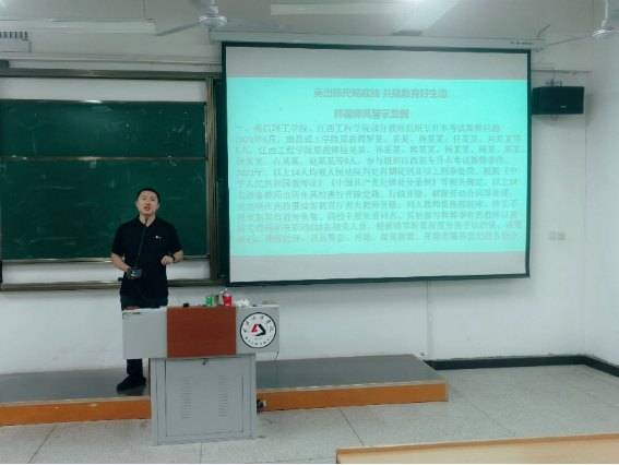会上,陈龙详细通报了高校近年来党内师德师风违纪案例。通过对案例的逐一剖析,陈龙总结提出了防微杜渐的重要性,系统强调了党员干部应如何在日常工作和生活中保持良好的师德师风,并从实际出发在政治纪律、组织纪律、廉洁纪律、群众纪律、工作纪律、生活纪律六个方面做到融会贯通,真正以党规党纪校正思想和行动,自觉用党纪党规约束自己的言行。