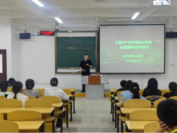 为扎实开展党纪学习教育,切实增强公司全体党员的纪律意识,始终做忠诚干净担当的共产党人,坚持立德树人,促进公司办学质量提升。教育公司党总支部于5月15日下午在5栋125教室开展《党纪学习教育》主题党课。会议由党总支部书记陈龙主持,必威西汉姆官网平台全体党员同志参与本次学习。
