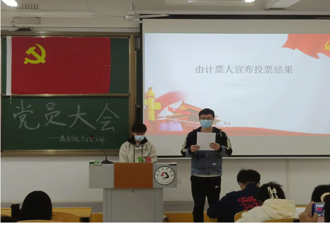 6名同志汇报完毕后,全体正式党员采用无记名投票方式进行表决,最后由党务工作小组刘奕航同志宣布投票结果。