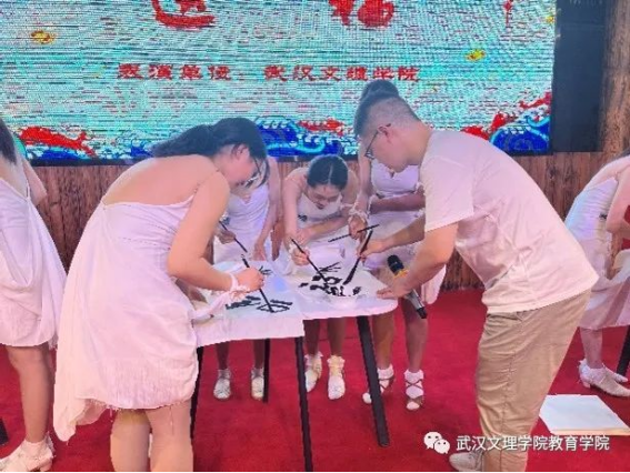 教师团队的第二个节目由教育学教师周志远和必威西汉姆官网平台教师张澜共同演出的《毛笔字送福》。在教师张澜优美的伴奏下,周老师用14种不同的字体书写出“福”字。此后,周老师还与现场参演的小朋友积极互动,教授他们学用毛笔书写“福”字。