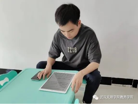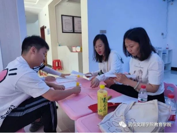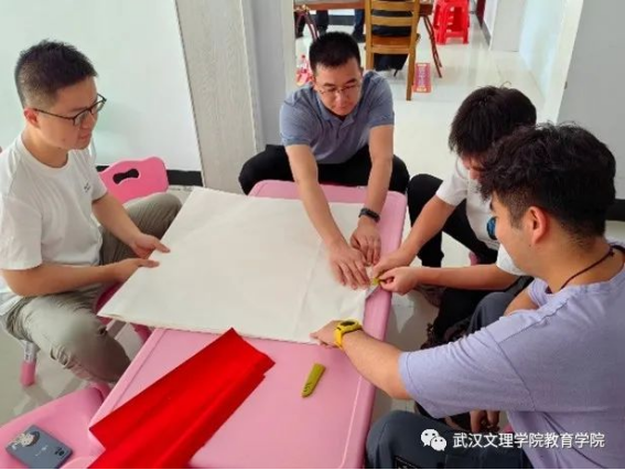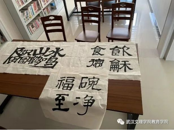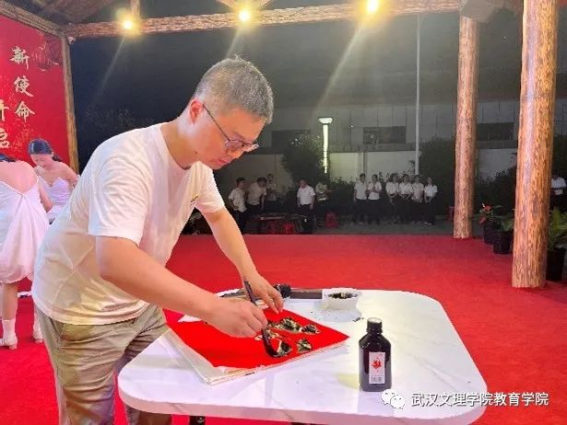 教育学系周志远老师将演出毛笔字送“福”节目,大家正在为该节目做好前期准备工作。