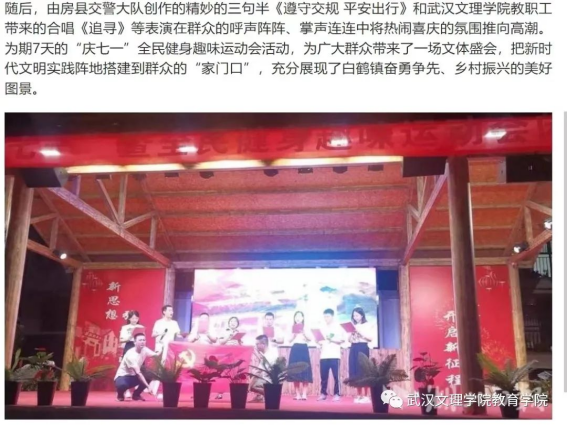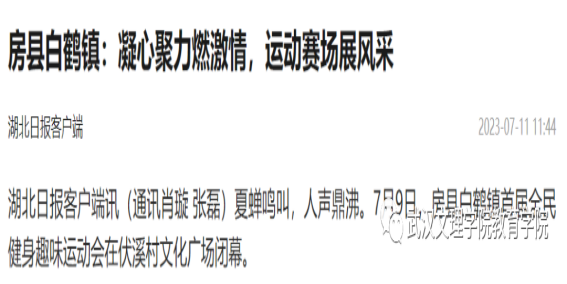 在“湖北日报”《房县白鹤镇:凝心聚力燃激情,运动赛场展风采》的专项报道中,本次必威西汉姆官网平台主题党日活动也被提及表扬,也共证了教育公司党总支与十堰市房县白鹤镇伏溪堰村的乡亲们的血浓乡情。
