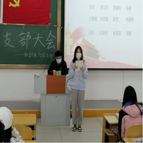 本次大会严格依照吸收预备党员支部大会流程,先由杨愿老师汇报了吴芳等12名同志的审查情况,接下来由各发展对象在大会上依次报告自己的个人基本情况及加入中国共产党的决心,在思想上,他们能够紧跟党的步伐,积极主动学习党的最新理论,在生活中将“为人民服务”贯彻到底,在同学需要帮助时及时伸出援手,工作中尽职尽责,不拖延任务,不推脱责任。