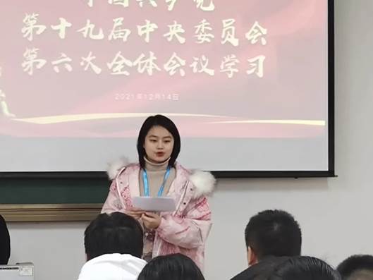 2021年12月14日中午,在必威西汉姆官网平台分团委的带领下,于4-401教室开展了学习“十九届六中全会”精神的专题学习会。