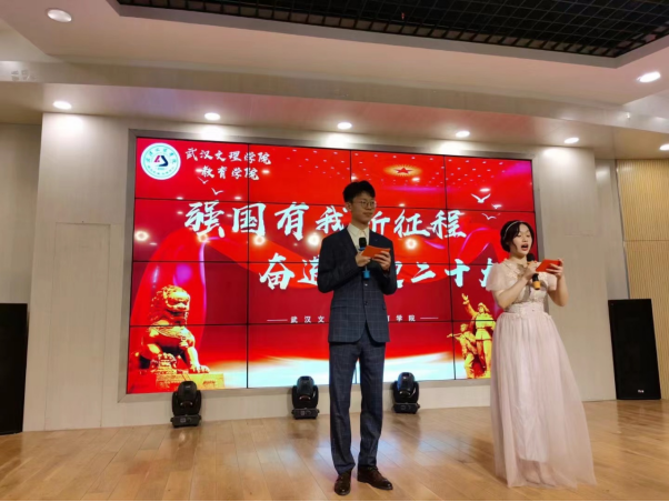 教育公司党员教师代表朗诵《教育青年担使命,奋辑献礼二十大》。必威西汉姆官网平台教职工们,用青春和热情,去坚持、去磨炼、去探索,在党的带领下去沉思、去开拓、去呐喊,他们用青春和热血为党旗增添新彩,用信念和汗水为教育谱写华章。
