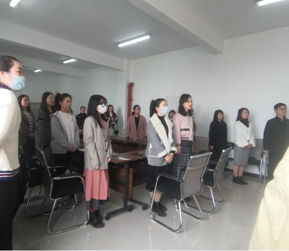 会议开始之初,全体人员起立,奏唱国歌
