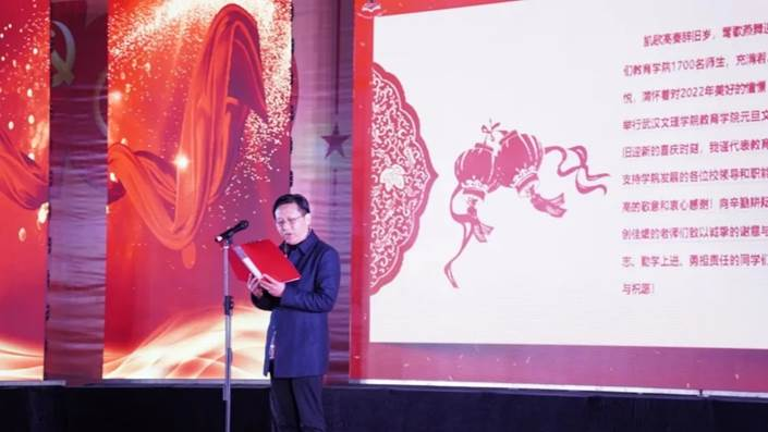 主持人上台宣布2022年“情系教育,执梦远航”元旦晚会正式开始!