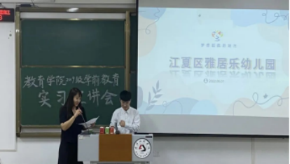 本次参加宣讲的实习单位有(排名不分先后):贝斯特幼儿园、金科城幼儿园、武汉旺斯达幼儿园、爱乐佳幼儿园、雅居乐幼儿园、青润安博尔国际双语幼儿园、童和家儿童成长中心、妇幼托育中心、金色阳光幼儿园、宜昌七色鹿托幼服务有限公司、高车幼儿园、武汉实验幼儿园、武湖中心幼儿园、光谷育桐教育集团。