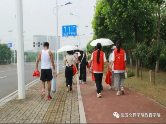 团队成员本着“不惧困难、勇往直 前”的“闯”劲儿,利用周末的休息时间共同踏上了前往目的地的道路。活动当日最高气温高达38℃,从出发地步行到江畔,纵使是平坦的大路,也让队员们用时了90分钟,他们身穿红马甲,就这样,一抹闪耀的“志愿红”、“中国红”成为乡村道路上一道亮丽的风景线。
