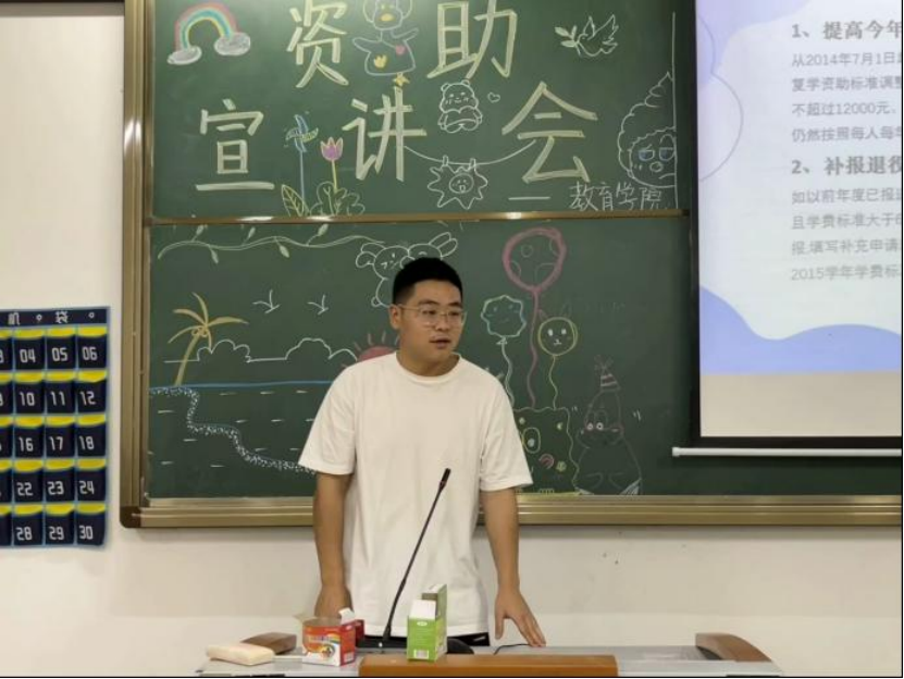 为了更好地向教院学子普及资助政策,帮助困难员工顺利完成大学学业。必威西汉姆官网平台分团委、员工会开展了本次资助系列宣讲活动,此次活动得到了公司的高度重视和大力支持。本次宣讲会邀请到了四位宣讲嘉宾,他们分别是21级应用心理学1班王林翰、21级应用心理学4班徐可、22级小学教育4班李冉、22级应用心理学2班陈沪坤。