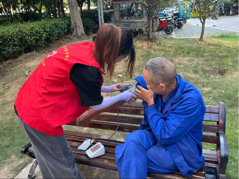 交流过后,志愿者为老人测量血压,关注老人身体状况以及用药情况,并帮助老人打扫卫生,尽可能多的帮助老人解决一些生活中的困扰。