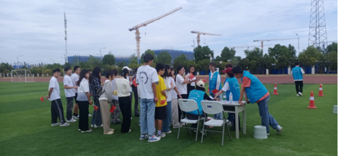 《百团大战》即一个队进入划定的圈中,其余队在圈外,哨声响起游戏开始,圈内躲避,圈外用球砸向圈内队伍砸中淘汰,时间到圈内有人即圈内队伍胜利,反之则圈外队伍胜利。在这场充满活力的游戏中,哨声响起,如同战斗的号角,圈中的小组迅速躲避,恰似革命先辈们在艰难险阻中灵活应变。圈外的小组奋力将手中的球掷出,那球仿佛是历史的考验,砸向圈中的队伍。被砸中的小组虽遗憾淘汰,但他们如同在历史长河中暂时遭遇挫折的奋斗者。圈内外的参赛者们在这场激烈的角逐里,犹如引领着大家穿越时空隧道,去体悟革命先辈们在真正的百团大战中那炽热如火的爱国情怀与坚如磐石的责任感,也让大家更加深刻地领会到团队合作的非凡意义。