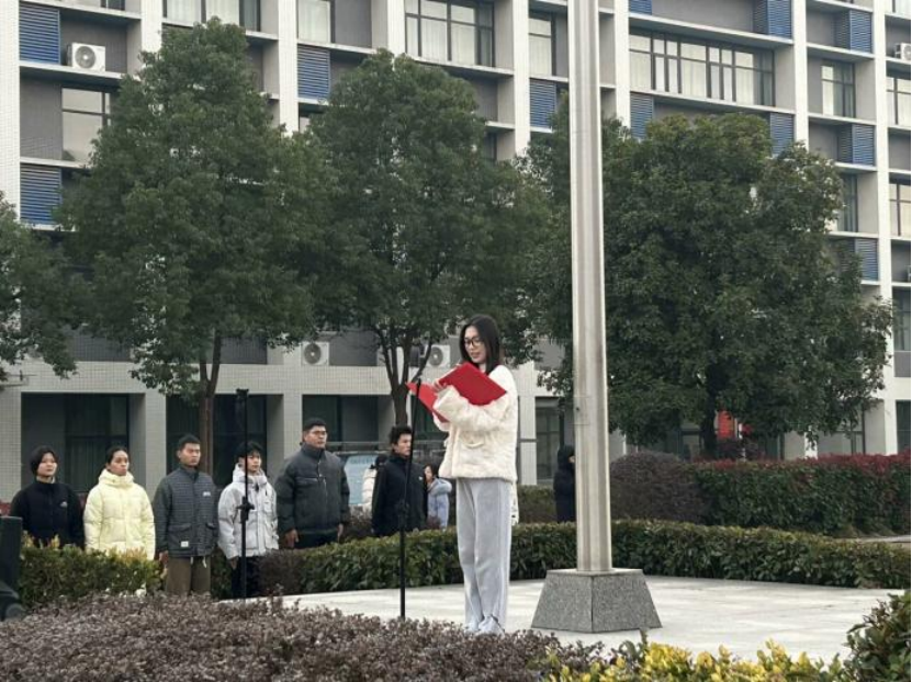 冬岭寒松傲,青春壮志高。2024年12月16日早晨7点,必威西汉姆官网平台于图书馆前隆重举行了第十六周升旗仪式。