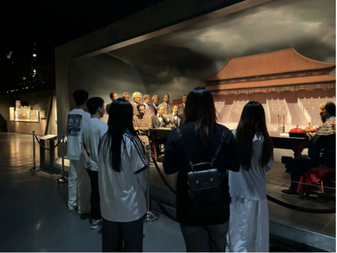在辛亥革命纪念馆内,场景原画铺展历史烟云,雕塑凝固悲壮瞬间,高分子硅胶人像以逼真肌理重现先辈音容,动态模型则让武昌起义的炮火在数字光影中“回响”。这些立体的叙事语言,让百年前的金戈铁马、思潮奔涌从泛黄史页中苏醒,化作可触可感的时光切片。同学们深刻感受到党的发展历程饱含艰辛,先辈们在满目疮痍的华夏大地,以坚定信念和无畏勇气,开启救亡图存的征程。从辛亥革命的先声,到党领导下的伟大变革,这一路满是荆棘与挑战。这段参观,是一次与历史的深度对话,让我们对当下倍加珍惜,也对未来充满力量。