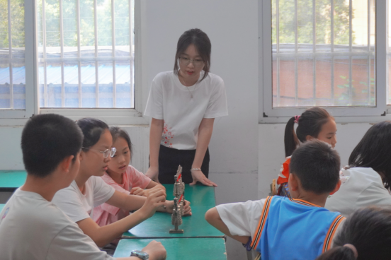 7月1日至7月2日,服务队组织开展了集中模课活动。参与第一批次授课的队员们依次进行模拟教学展示,袁若曦从教学语言表达、课堂互动设计、编钟知识讲解的准确性与趣味性等方面进行细致点评与指导,队员们相互交流探讨,不断优化教学方案,打磨教学细节,力求以更生动、更专业的方式呈现非遗编钟课程。