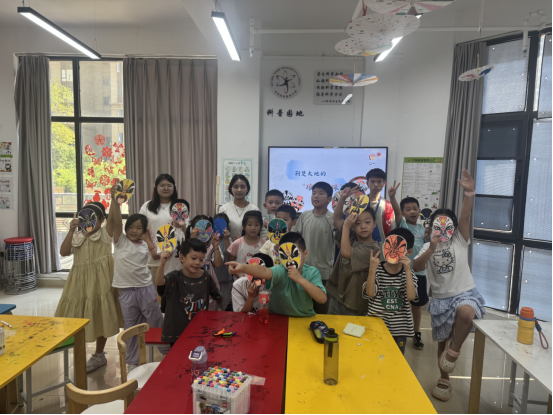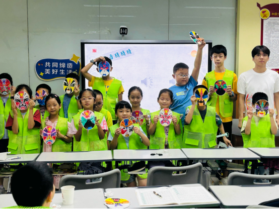 在脸谱知识问答中,孩子们指着图谱争相抢答,化身成“小小点评员”结合所学分析角色特点,现场气氛热烈而有序。脸谱绘制环节,空白面具在孩子们的笔下绽放异彩:有的复刻经典,用红黑勾勒出关公的英武;有的大胆创新,以撞色描绘出心中的“小英雄”。