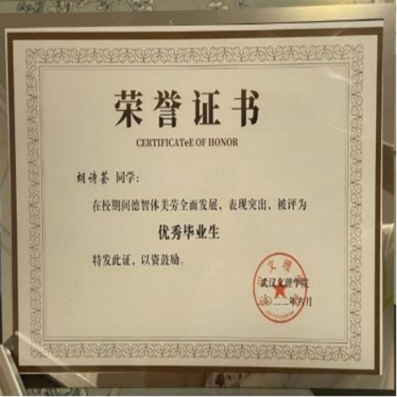 在校期间,连续三年综合测评成绩稳居第一,获2022届“优秀毕业生”,在校期间,共获国家级、校级、院级荣誉40余项,一次性考取小学心理健康教育教团队格证、普通话二级甲等,高级心理健康指导师等技能证书。