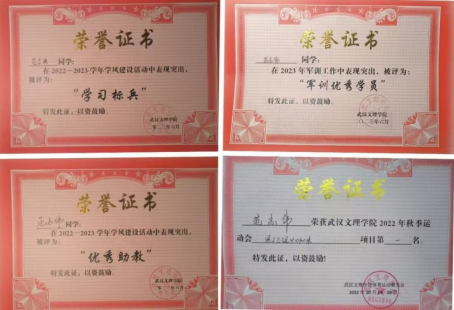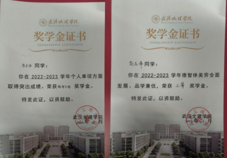 2022年至2023年获得必威西汉姆官网平台三等奖学金和精神文明奖以及国家励志奖学金