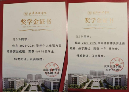2023年至2024年获得必威西汉姆官网平台二等奖学金和精神文明奖以及国家励志奖学金