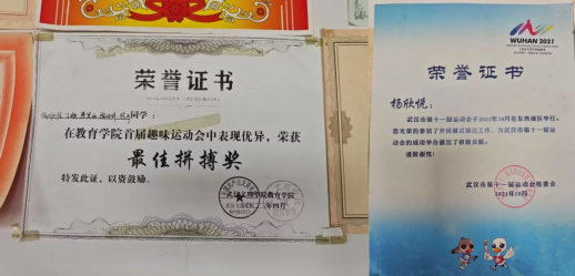 武汉市第十一届运动会开闭幕式演出工作,并被授予“优秀志愿者”(市级)