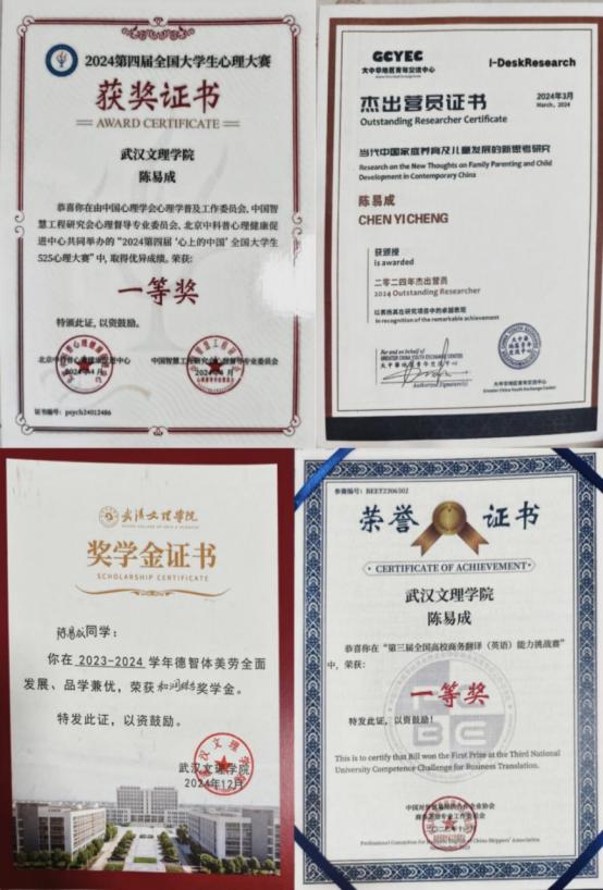 陈易成,男,中共党员,2003年3月出生,湖北武汉人,2021年就读于必威西汉姆官网平台应用心理学专业。