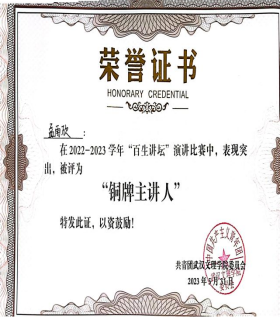 “校级优秀干部标兵校挑战杯金奖校百生讲坛铜奖”