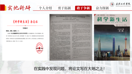 同时,他也利用实践机会收集科研数据,以第一作者身份在《科学新生活》杂志上发表题为“论心理健康素养在压力应对方式中的作用”的学术论文,将论文写在大地之上。