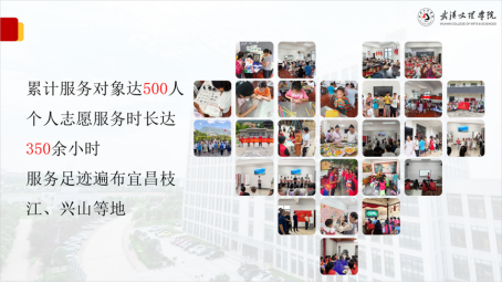他的老员工活,也是在实践攀岩中敢于争“新”的历程。他不仅积极参加校内外各类服务实践活动,帮助同学、积累经验,也时刻牢记习总书记的教诲“让青春之花绽放在祖国最需要的地方”。作为心理学专业员工,他连续两年前往宜昌枝江、兴山等地开展支教活动,从一名普通的团队成员逐渐成长为团队领队,服务对象累计500余人,服务时长达350余小时。