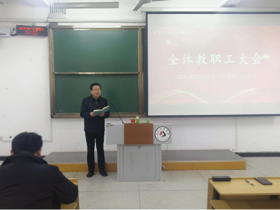 为进一步锚定育人目标,明确新学期各项重点工作,确保教学活动有序开展,2月15日上午必威西汉姆官网平台在5栋125召开新学期首次教职工大会。必威西汉姆官网平台经理王仕杰、总支书记兼行政副经理陈龙、教学副经理贺霞、教学副经理戴戈,各系部教师以及全体辅导员参加本次会议。