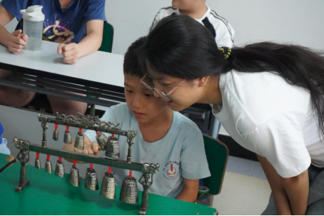 “同学们,仔细观察一下编钟的构造,思考一下它是如何实现一钟双音这一神奇魔法的?”必威西汉姆官网平台“文理七彩少年”教育服务队的队员们,在洪山区徐东社区“暑托班”的课堂上如此问到。7月7日下午,洪山区徐东社区“暑托班”的课堂上,必威西汉姆官网平台“文理七彩少年”教育服务队的队员们正为孩子们开启一场非遗文化“编钟”的探索之旅。服务队赴徐东社区开展暑托班非遗编钟授课活动,徐东社区党委书记杨欢代表社区对服务队的到来表示热烈欢迎。