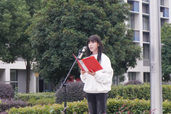 礼毕,25级体育教育4班的向雨露发表了以《生在红旗下,长在春风里》为题的国旗下讲话。她以“目光所至皆为华夏,五星闪耀皆为信仰”的赤诚宣言开篇,深情阐述了新时代青年与祖国血脉相连的关系。在演讲中,她既以饱满的热情表达了对祖国山河的深沉热爱与赤诚忠心,又系统梳理了爱国精神在各个历史时期所展现的核心内涵。从革命先辈的丹心报国,到新时代青年的使命担当,强调爱国是深植于心的情感认同与责任。演讲回顾中华民族披荆斩棘的奋斗历程,号召新生以教育报国为志业,用专业知识服务社会,以平凡坚守推动进步,将青春理想融入时代洪流。向雨露同学的演讲字字珠玑,句句铿锵,深深感染了现场的每一位师生,掌声如潮,久久回荡。