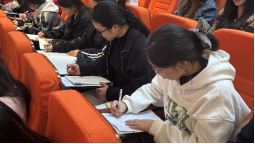 同学们不仅学习了书法技法,更感受到“以字载道、以书育人” 的教育理念,纷纷表示要将这种 “文化 + 技能” 的教学方式融入未来的课堂。同学们也积极参与到课堂教学中,指导员工书写。