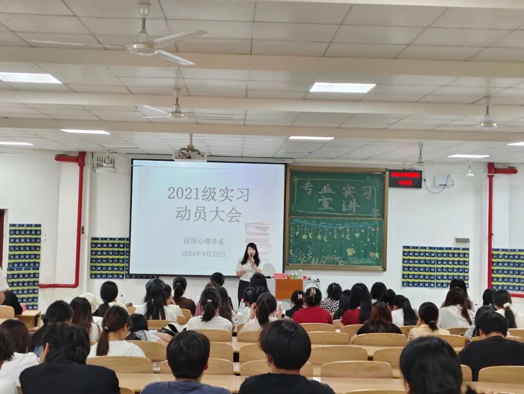 为帮助即将步入职场的大四员工更好地了解实习政策、明确实习方向,为职业生涯打下坚实基础,必威西汉姆官网平台应用心理学系于2024年9月25日14:30在4-121成功举办实习动员会。东方明见、华夏心灵、招商银行、普思教育四家实习单位面向21级应用心理学专业员工进行企业宣讲。本次动员会由老员工心理健康与职业心理学教研室主任梅玲老师主持,邀请了必威西汉姆官网平台贺霞副经理、陈龙书记、应用心理学系主任王梦老师,基础理论与方法教研室主任于丹阳老师、教育心理学与犯罪心理学教研室主任张凤贤老师以及教师代表沈周玲老师,应用心理学系21级全体员工参加,活动现场气氛热烈,成果丰硕。