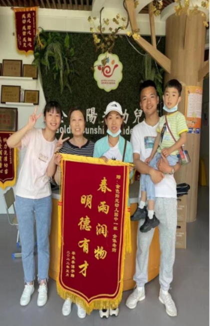 他是家长、孩字们口中的“饼干老师”,并在任教期间获得家长颁发锦旗,获得充分认可。在发言中他说在这里学到了很多课本上没有的知识经验,同时也结交了许多良师益友,不管是开始的带教老师还是幼儿园的园长领导,在这里他的专业知识和技能得到了进一步的培养。