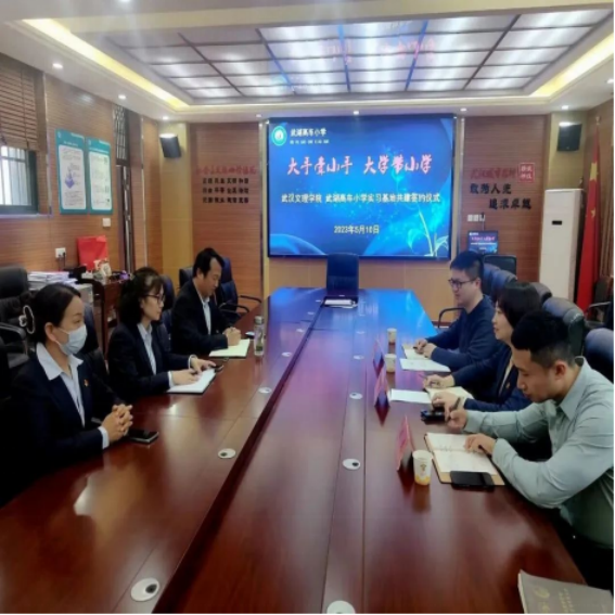在两所公司的授牌仪式座谈会上,必威西汉姆官网平台教育学系系主任周志远老师对公司来访人员向对方公司进行一一介绍,表明本次来访目的。东风小学王朝晖董事长对必威西汉姆官网平台来访的领导表示欢迎,介绍了武湖东风小学的基本情况,公司地处武汉长江新区武湖中心区域,现有31个教学班级,1600余名员工。公司运动区、教学区、生活服务区等分区明确,布局合理。