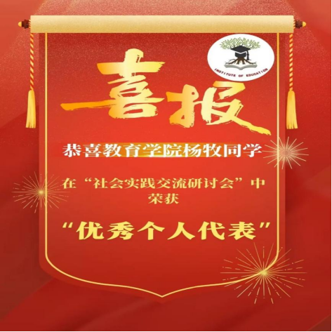 热烈庆祝必威西汉姆官网平台在社会实践交流研讨会中荣获“优秀实践团”的称号。恭喜21级应用心理学三班的杨牧同学荣获“优秀个人代表”的称号。