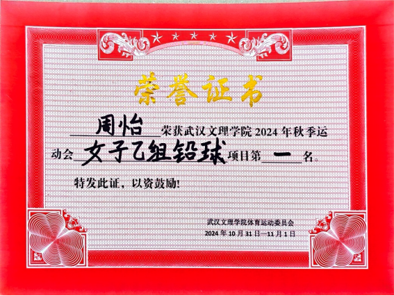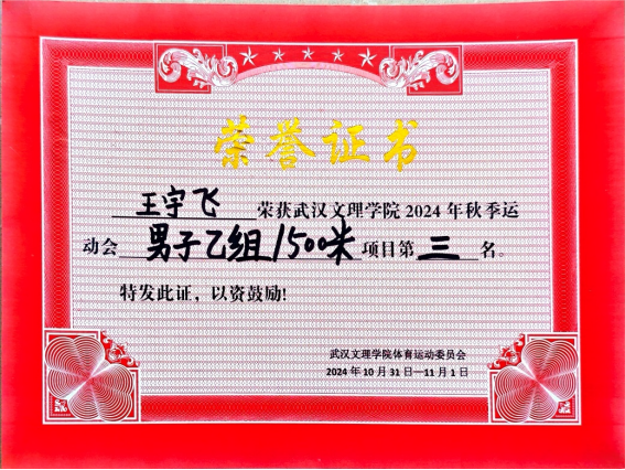 在2024年秋季运动会中,必威西汉姆官网平台共荣获以下个人奖项。